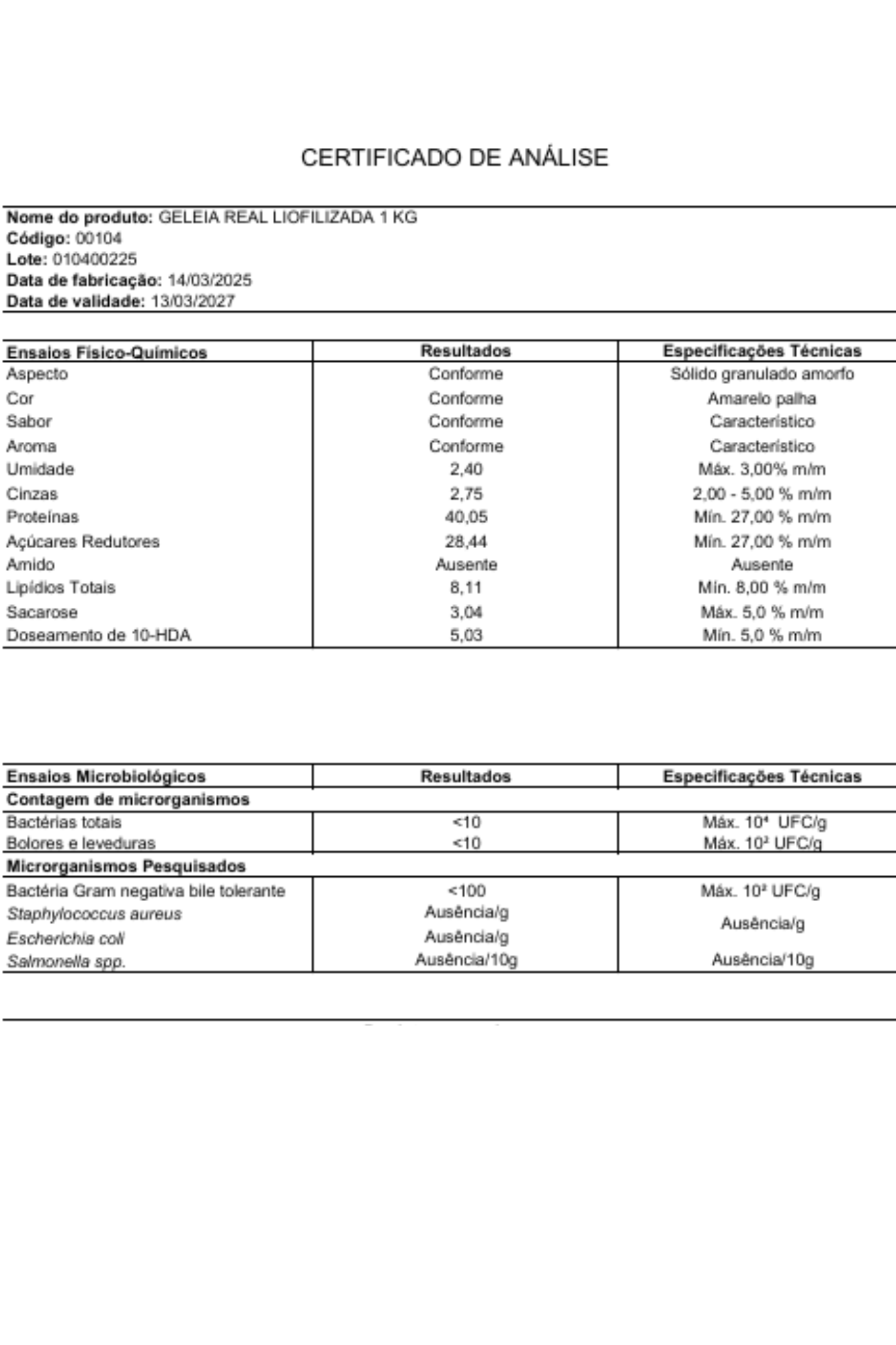 Ácido 10-HDA (marcador de qualidade): 5,03%