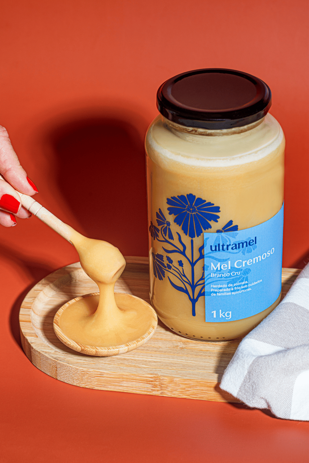 1 Ultramel – Mel Cru Cremoso Branco 1kg: Mel artesanal de coloração clara, sabor suave e notas levemente frutadas. Apresenta textura aveludada, resultante de cristalização fina e natural, seguida de batimento para conferir cremosidade. Produto composto exclusivamente por mel, sem adição de açúcares ou outros ingredientes. Indicado para consumo puro ou em preparações culinárias.