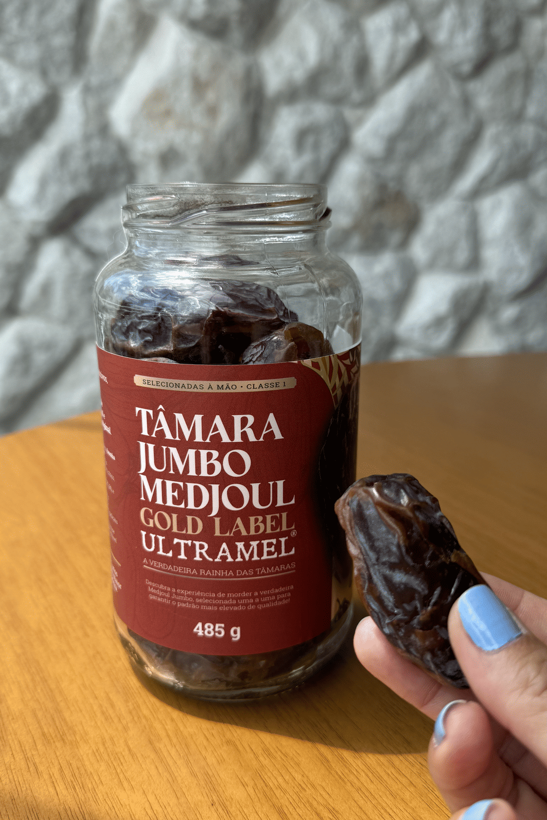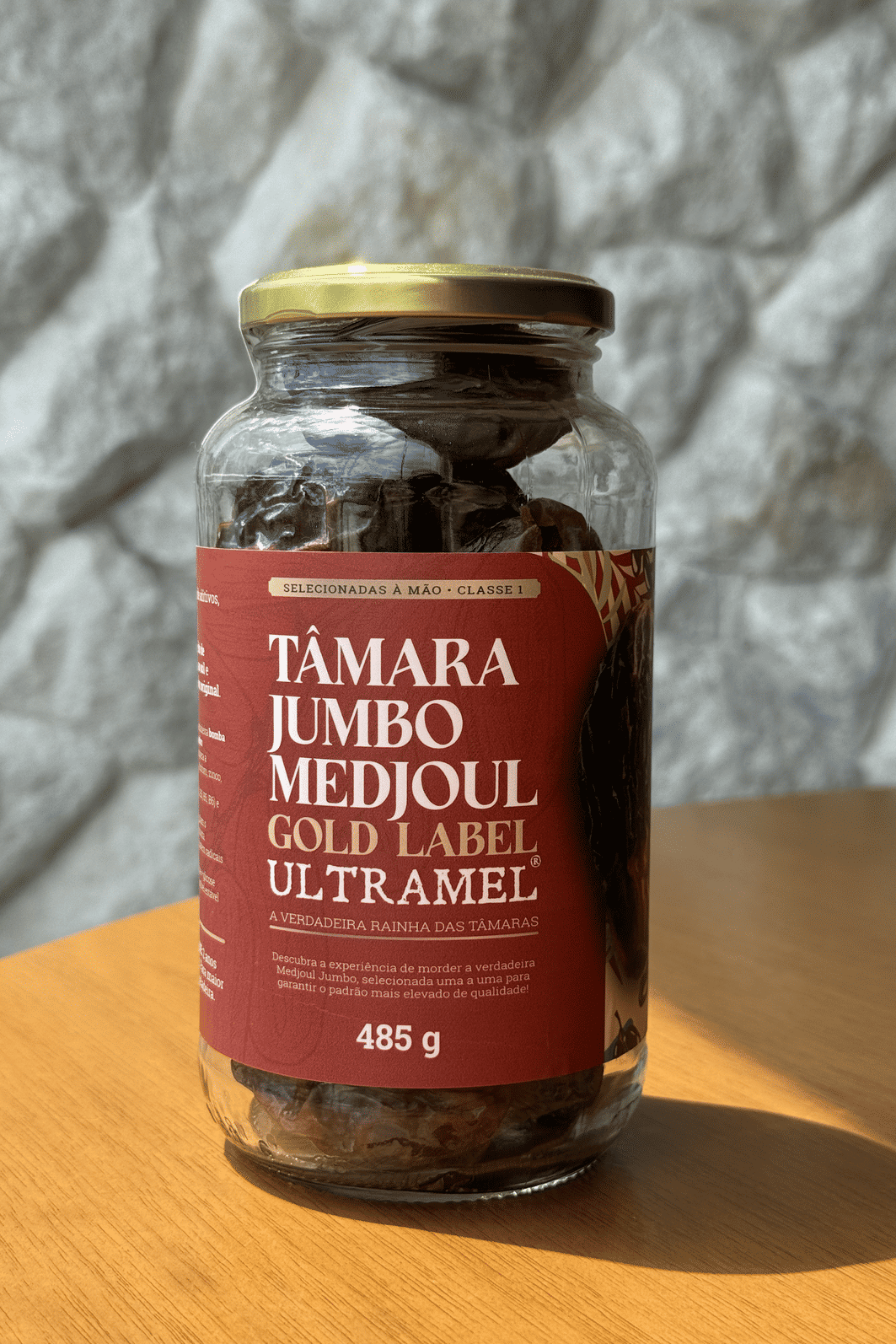 A Tâmara Jumbo Medjoul Gold Label Ultramel é cultivada em regiões tradicionais e ensolaradas reconhecidas pela produção desta variedade. Colhidas no ponto adequado de maturação e naturalmente desidratadas, apresentam textura macia, polpa carnuda e doçura característica da própria fruta.