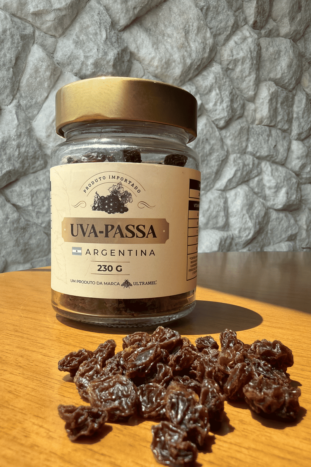 A Uva Passa Preta Ultramel é elaborada a partir de uvas selecionadas da Argentina, desidratadas naturalmente para preservar suas características sensoriais, como sabor, aroma e textura. Trata-se de um alimento naturalmente doce, prático e versátil, ideal para consumo em lanches, preparações culinárias ou como complemento de uma alimentação equilibrada.